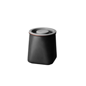 以赤陶成的罐身型,上下方,呼天地方的中哲,光黑釉的表面增添手感,用以放、收各香料、乾、米、咖啡豆、茶等乾,的也合做意十足的花器。