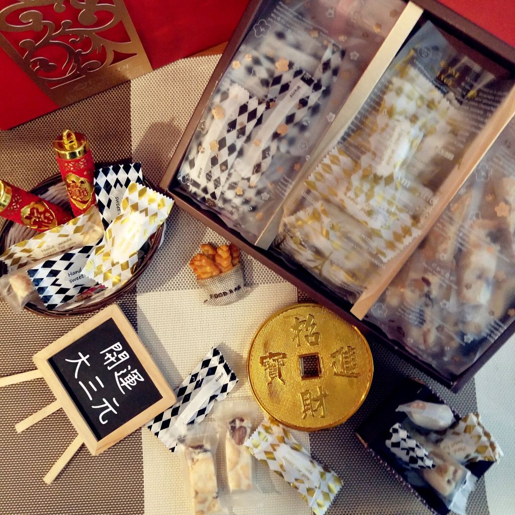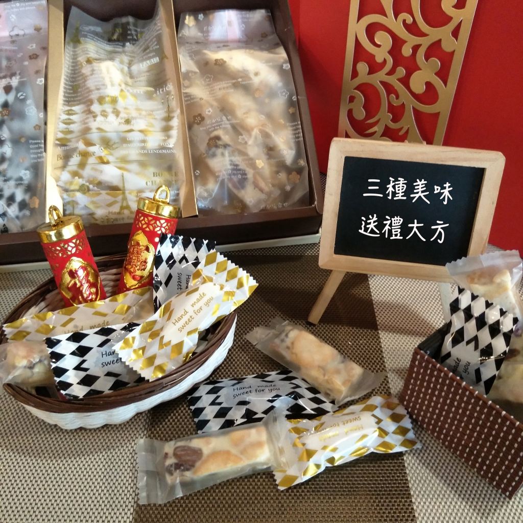 含 杏仁果蔓越莓牛糖、桂南核桃糕、奶香果乾雪Q,每一口甜滋都是食材、新手工作,您比的足感盒均附提袋,春送超大方,面子十足,也是年家人共享不能的佳!