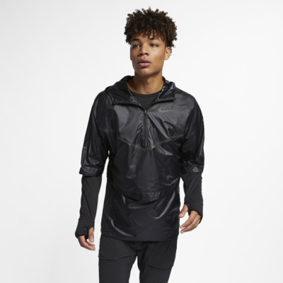 Nike Sphere Transform 男款連帽跑步上衣有可抵禦惡劣天候的表層,能在跑步時遮擋風雨; 不需使用時則可收進前方口袋,方便攜帶。