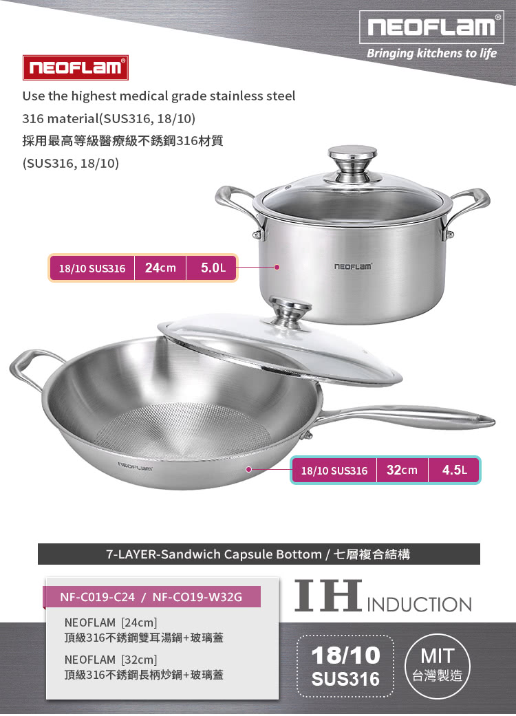 【NEOFLAM】皇家316不(24cm+32炒)手,不相信有人不知道在就能的到【NEOFLAM】皇家316不(24cm+32炒)