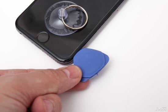 第4步:使用吸在主(Home)上方拉出幕。把吸固定在Home的正上方,另一手握住身,然後往外拉。你只需要在幕和身之撬足以塞一塑片的空就可以啦。