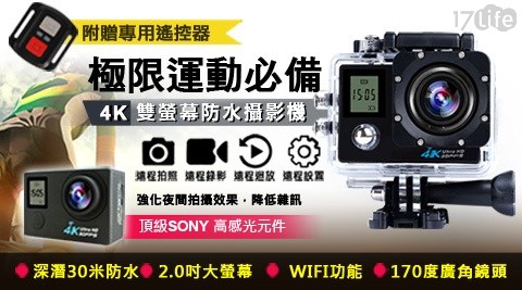 ※防水,30米深度防水 ※4倍位焦,拍距限拉近 ※支援WIFI功能