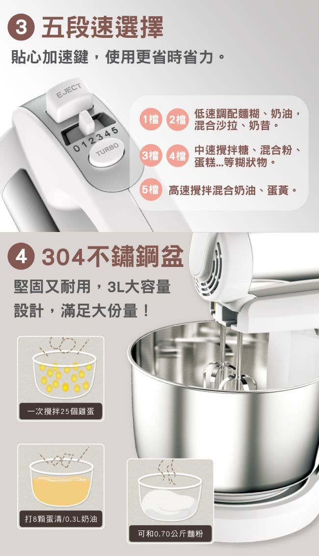 5段速,足各式料理 ◎搭配3L大容量SUS#304不盆 ◎新,盆可同步