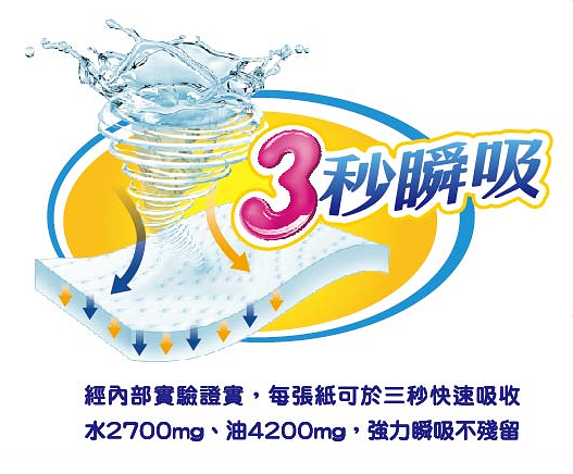 每可於三秒快速吸收水2700mg,油4200mg