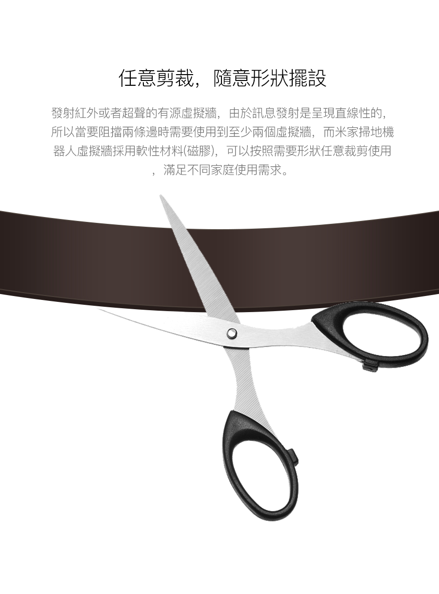 配合米家地器人● 薄便的高度磁 ● 源,久使用安全放心 ● 任意剪裁,意形 ● 距阻