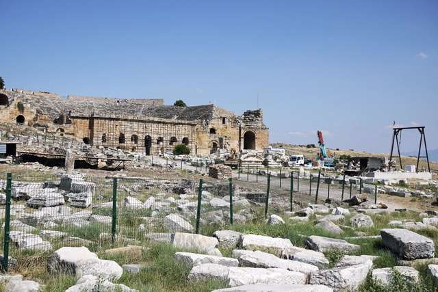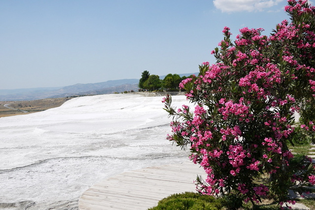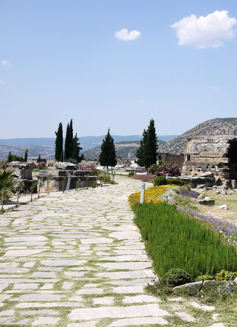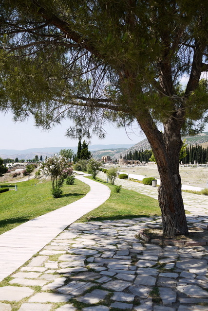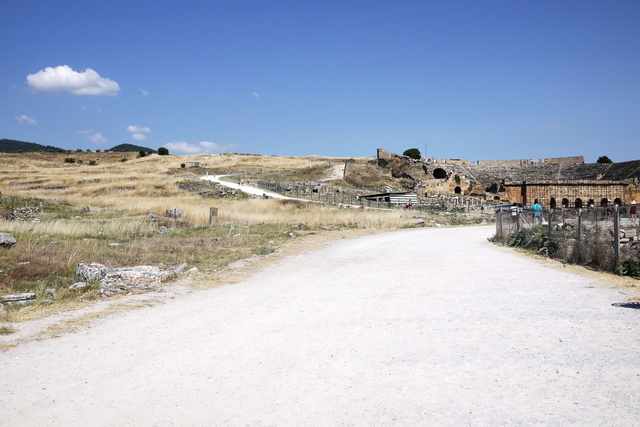 往前走~前面右有花草的地方就是通往Hierapolis希雷拉波里斯址的路