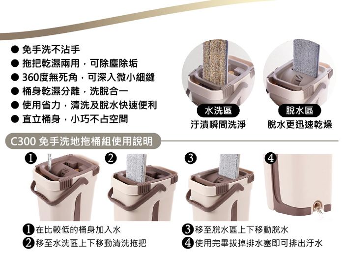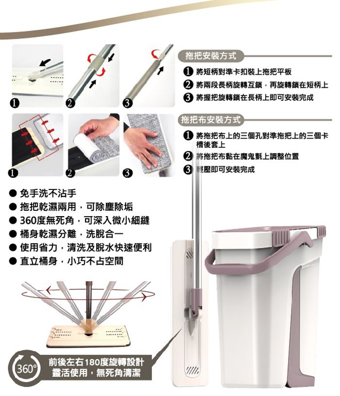 拖把乾用,可除除垢,全方位清,360度死角!再布。