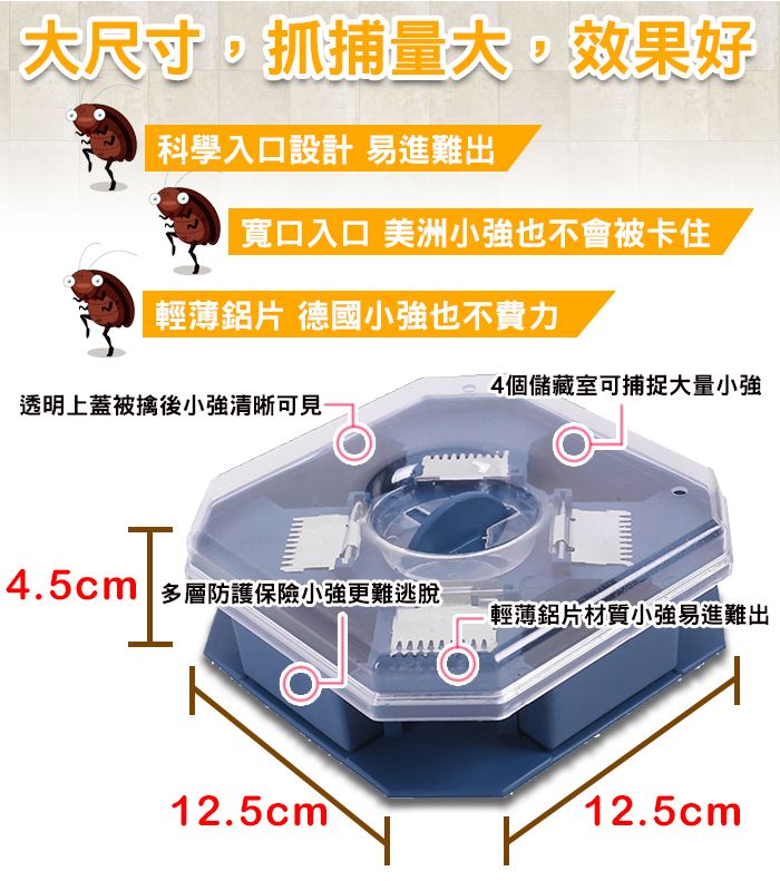 本品是最新研究的蟑螂捕捉器。品克服了因射化不慎染果蔬及家居境的不足。