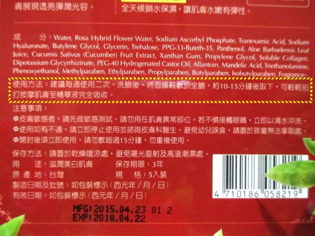 洗後是敷面膜的佳,候拿出「花萃肌美白面膜」接
