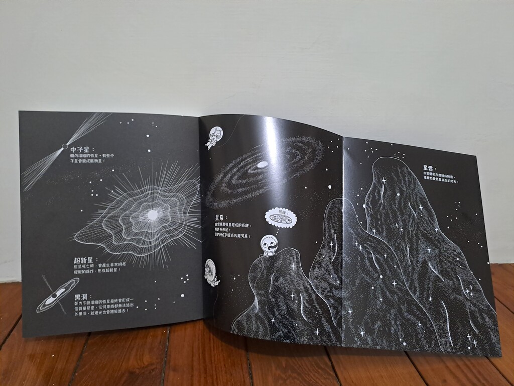 《物小夥伴的超太空末》封及底的折口,其各自的蝴蝶,可以看到多和天系或天文象有的名要定,而些名相的一步明,在乎都能找到,有趣的是,些名及有知的分享,不是以文字述,反而用孩子接受度高的,黑白主、彩色的文漫方式呈,同派出三人化物,引大小者一天文的浩瀚。