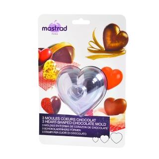 A set of 3 moulds for making gourmet choco late or nougat hearts.