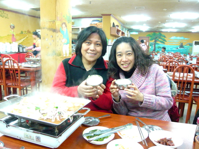 晚上,我四人在房狂吃零食、喝著茶及不得的"真露"!