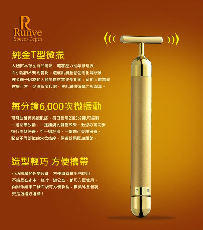 金活力美人棒每分6,000次的微震,可助持美肌,每日使用2至3分.可到一按摩放,一的重效果。