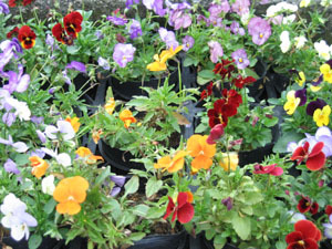 登高由面山坡林看道路旁由草花盆栽所成的景有如彩花毯地