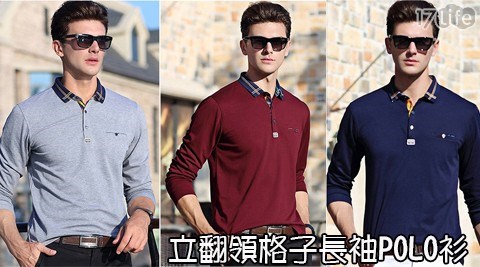 微微意就要穿~立翻格子袖POLO衫~以舒的棉成,不近肌、透性佳,避免汗流商百背~藏青/酒/灰色三色