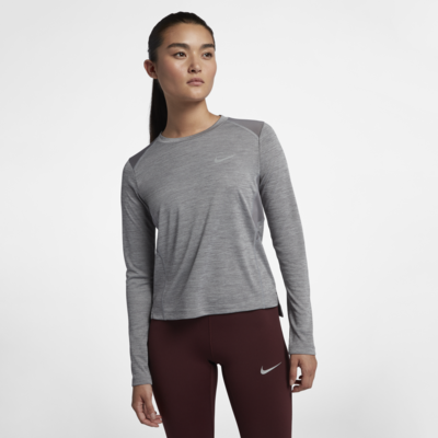 Nike Miler 女款長袖跑步上衣採用背部網布設計和排汗布料,可在跑步時保持涼爽舒適。