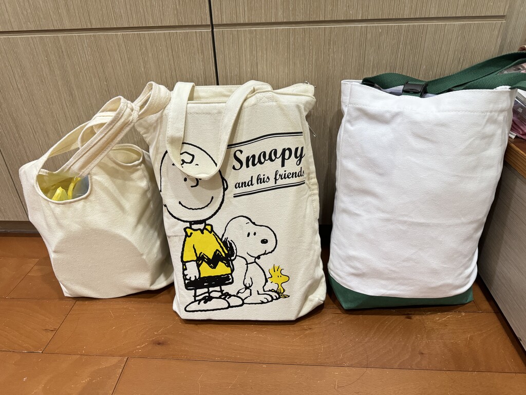 一袋是妹妹回家清洗的衣物 一袋是水彩用具 另一袋是小西+水桶
