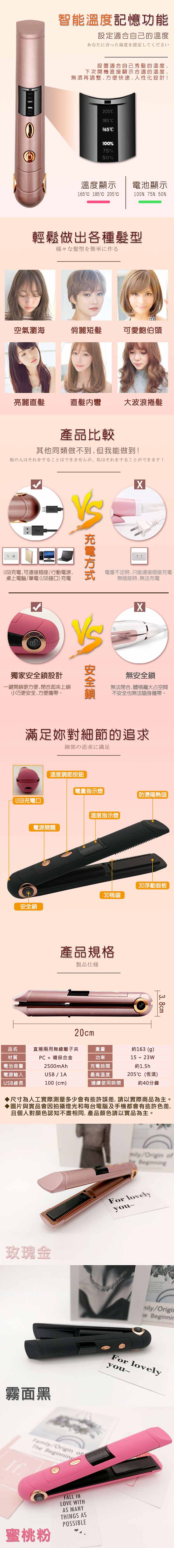 建可充式高性能池,安全方便 迷你尺寸,方便 3D梳浮板,使用效能高 USB充,有的