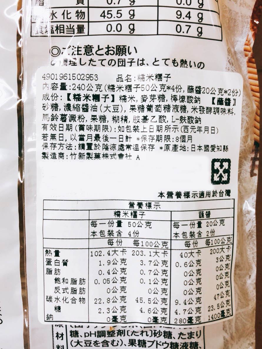 重量:240公克(糯米子50公克*4份,蘸20公克*2份)