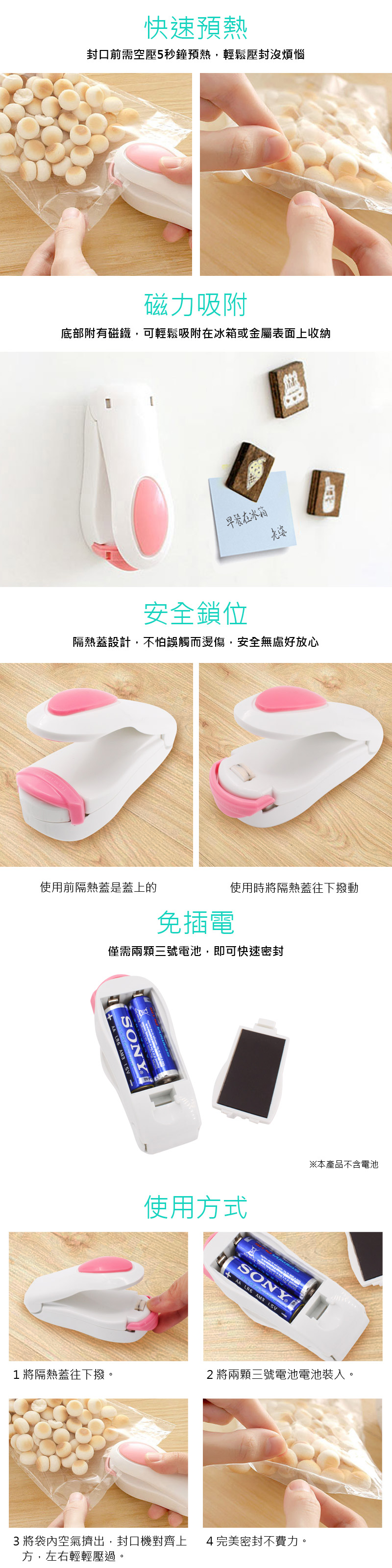 ★ 操作,五秒密封好 ★ 巧便,家、外都好用 ★ 食物保,防潮、防霉 ★ 磁,方便吸附金物上