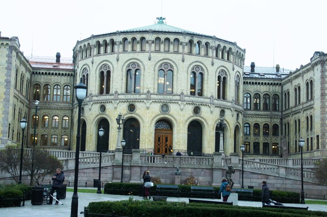 秋末的挪威,夜得很快,不到五城市已是火熠熠。我今晚下榻的旅店就在斯歌院面,餐後,我走街到斯歌院。