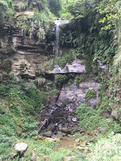 步道柔寸未修,有一段必需下到溪谷中,嶙峋山石,再慢慢往上接回原通往瀑布的步道。