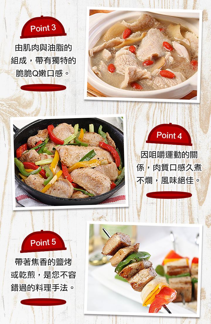 一可取得片,油脂分布均且肥瘦中,由肌肉油脂的成,有特的脆脆Q嫩口感,有肉斯斯的美名!