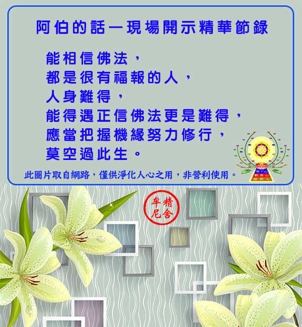佛法的播和社佛的影,不能只靠社上知名的高僧大德,需要每一位不知名的佛弟子,每日努力修行自持,用自己善良、慈悲的身教、言行,日一日、一一滴,感化生活周遭的人,使人同佛教的好,渡人佛,就是持佛法最好的方法。若真能做到,您也能成人的佛教法。南大慈大悲世音菩摩。