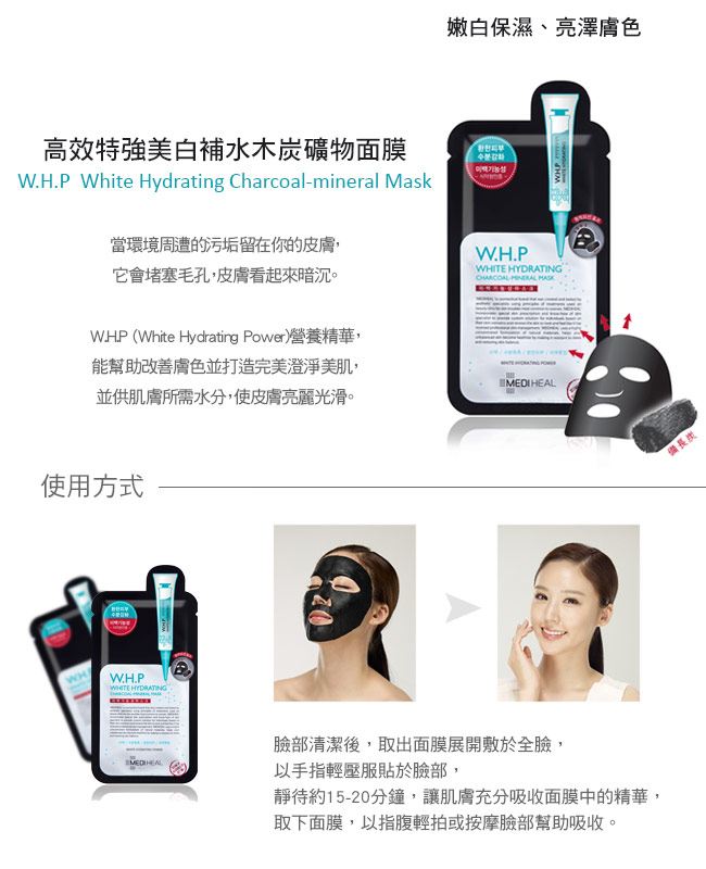 【本季惠活】【Mediheal美迪惠】WHP高效特亮白水黑面膜-共- 活限物惠