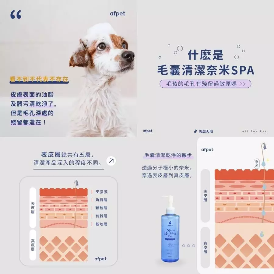 平常我毛小孩洗澡,可能只能清到皮表,但生活中有很多藏的染,比如空中的粉、留的化洗,甚至二手,都悄悄藏在的皮底。如果油是重理的基,Nano奈米浴就是升版的全身清。款用全年毛孩的奈米深露,利用奈米分子深入皮底,底清除化留、空污染以及二手等以清的垢。尤其於味重或毛油的狗狗,效果尤著。洗完後,搭配牛奶浴,不清,能保,毛又又滑。