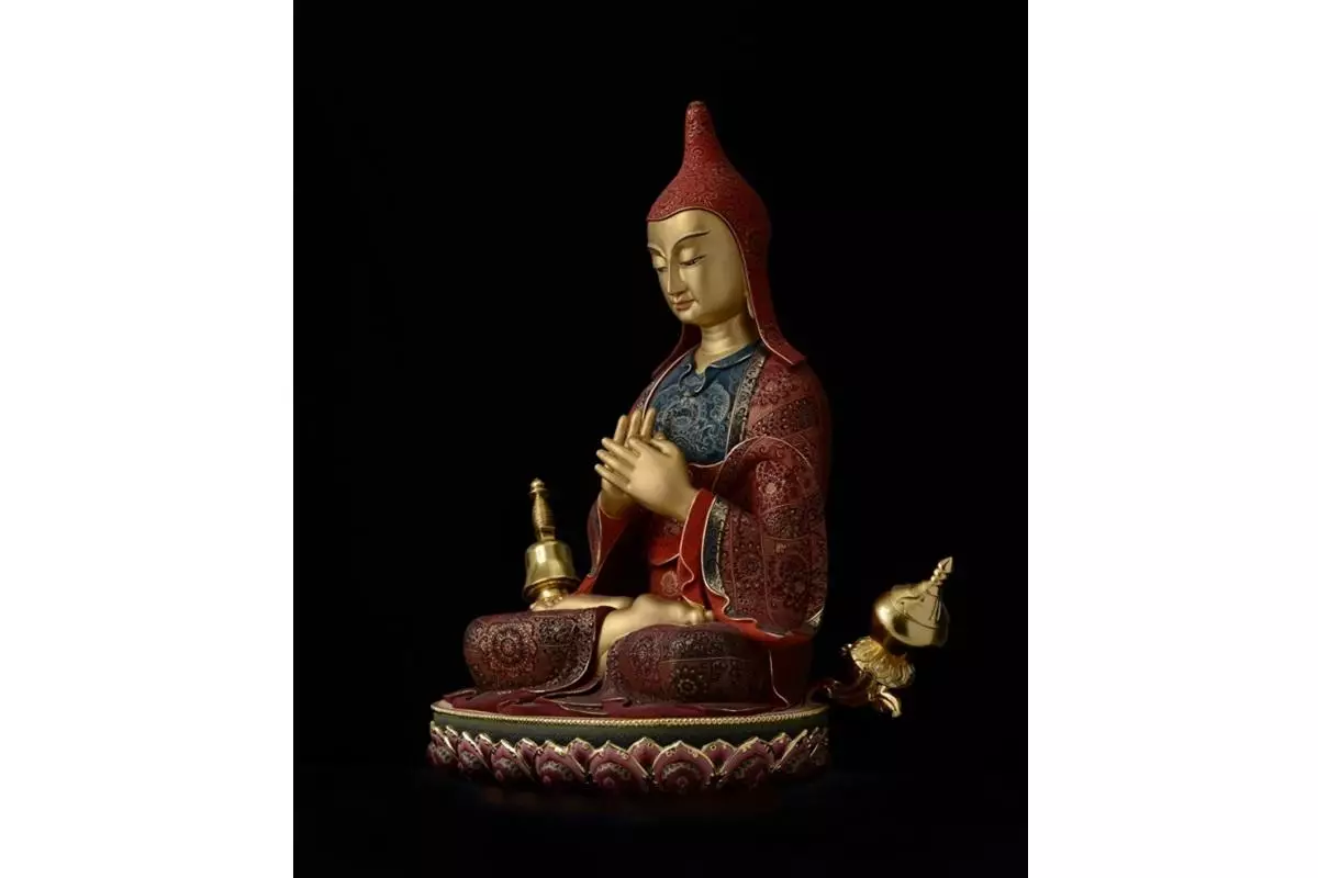 彩部分以法描佛像衣流感,合光影次,巧妙造出凝之感。此佛像藏於中浙江寺,供大朝拜,了如作品在岸佛教界的崇高地位值。