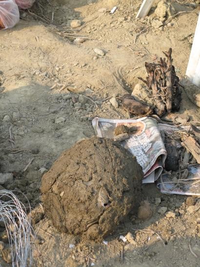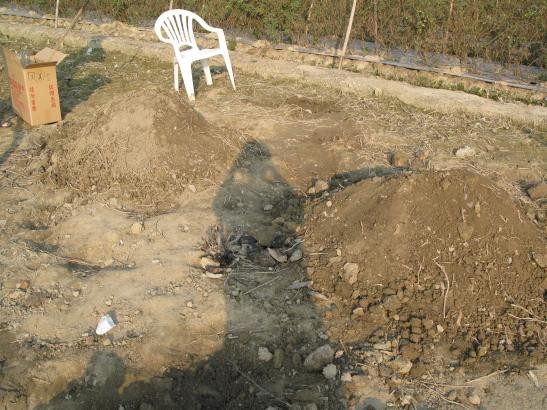 土完成之後,成了土堆。番薯、、屁股芋在土之中切的著。
