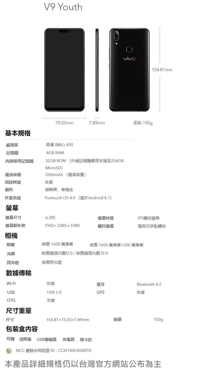 【VIVO】VIVO V9Youth展示金色(M10045) ,推,箱,CP值,,,便宜,惠,介,排行,精,特,周年,,限