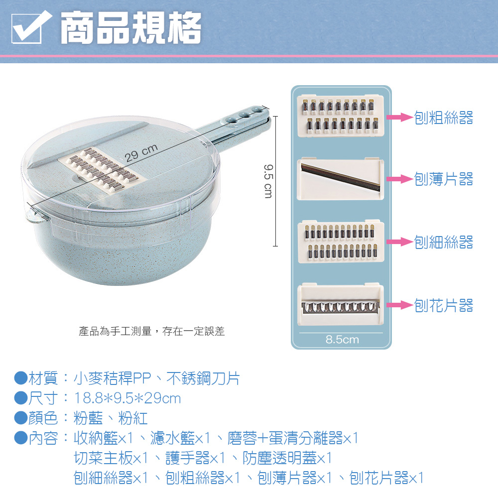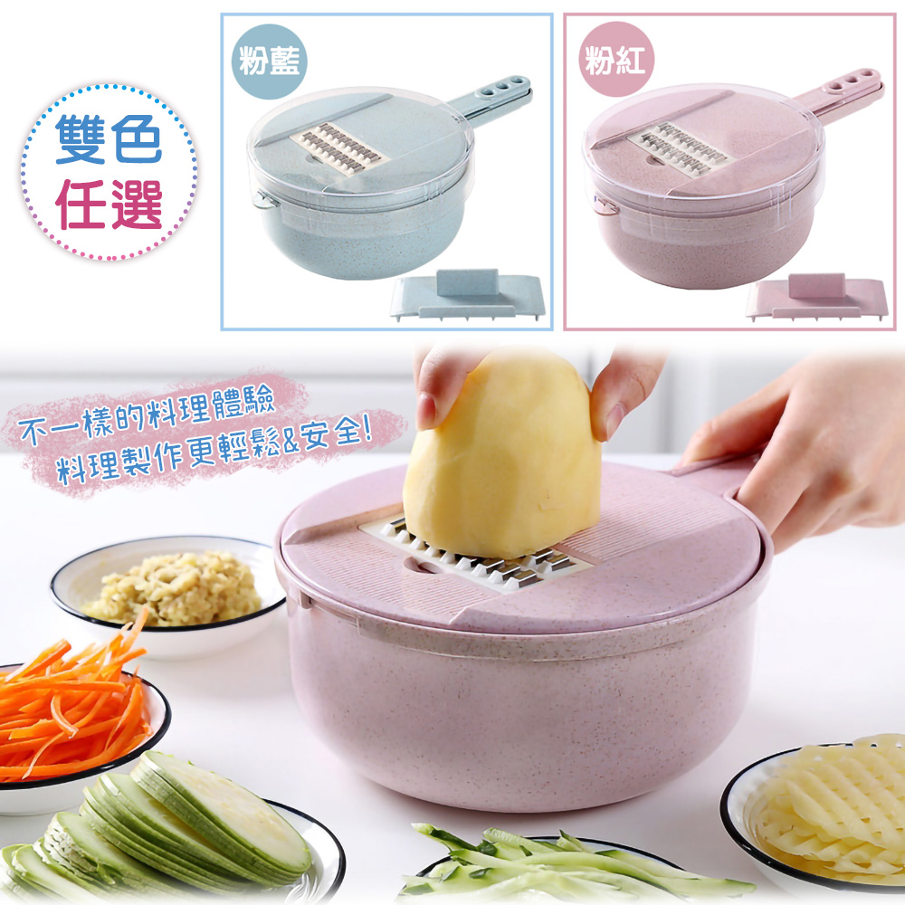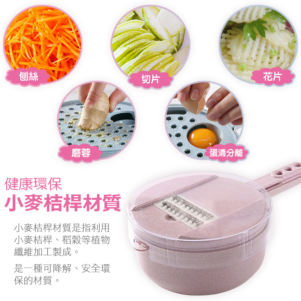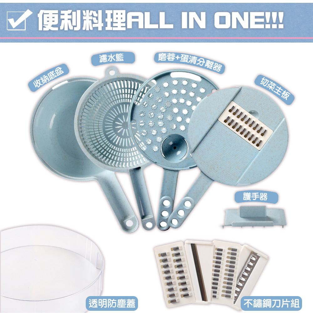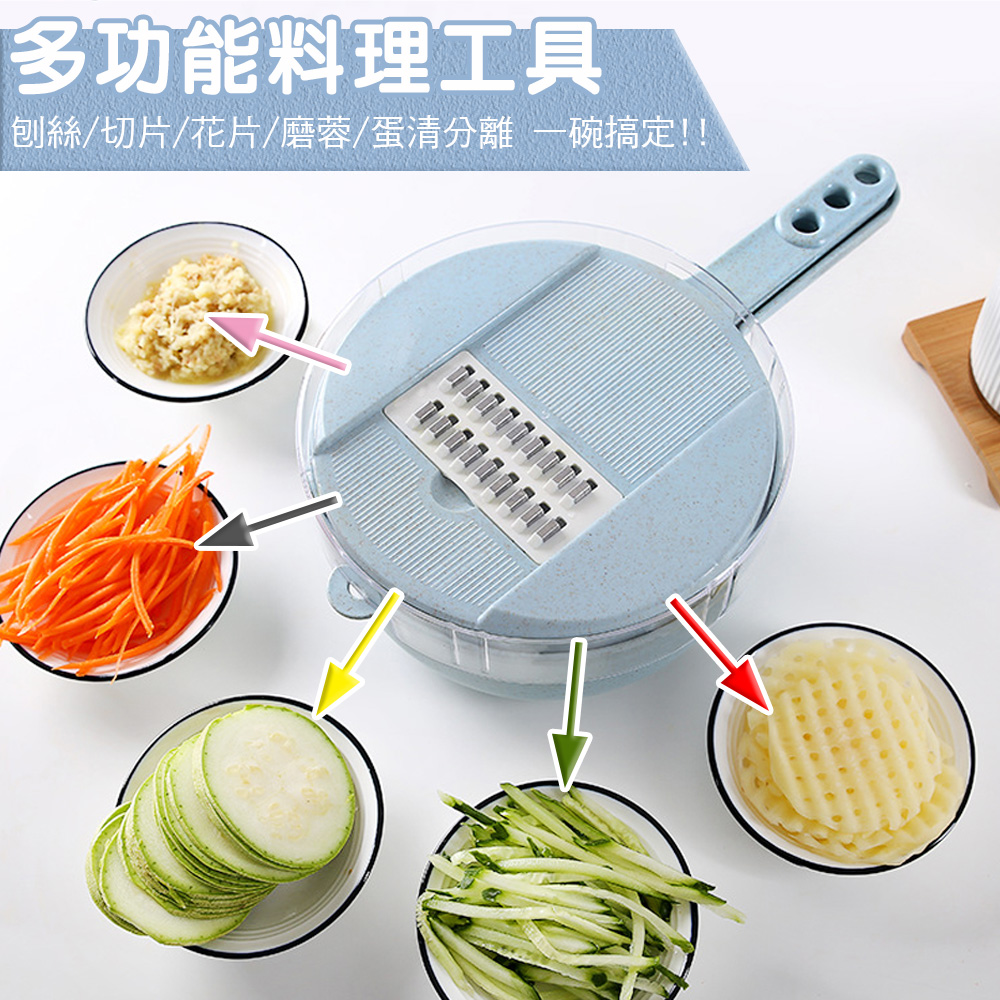 一共有十件,各式料理需要用到的刀具、磨具、削具、收、水通通都有唷!!好用不力,切片、刨...是洋、果、瓜、、署、、青辣椒、、檬、葫瓜、山...切片刨好就可水直接下,省省事!可磨蒜,分蛋清,附手器,使用安全、、快速!尾部孔洞,可上,不空。