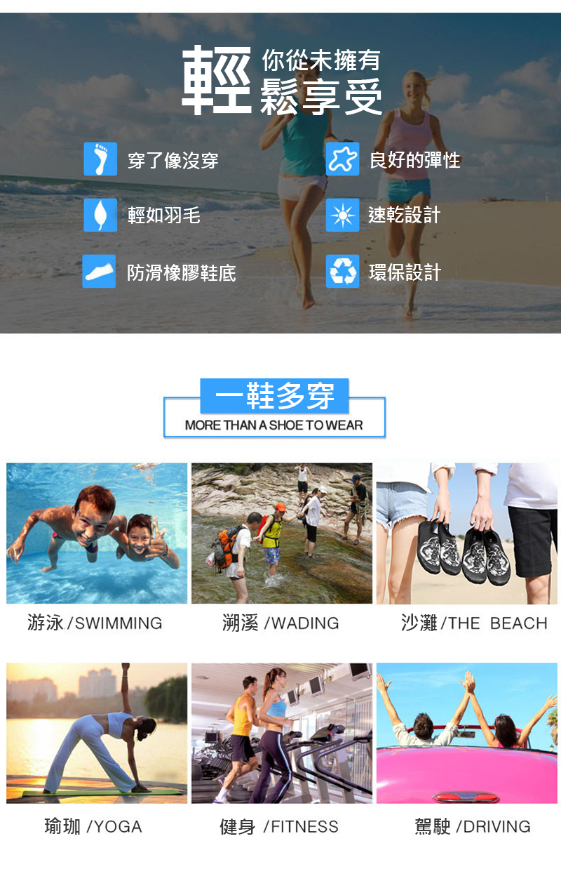 量、排水、!用利品送盈透柔材,快乾布料作,超柔性、凹凸理耐磨鞋底,不受任何境限制!