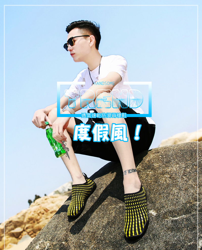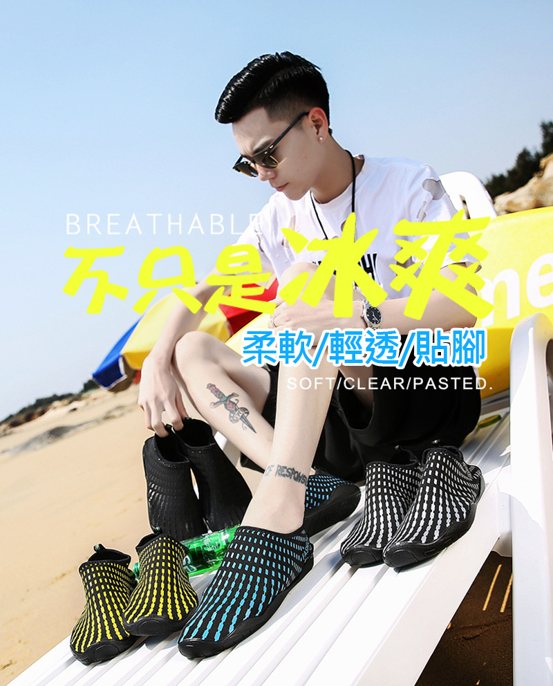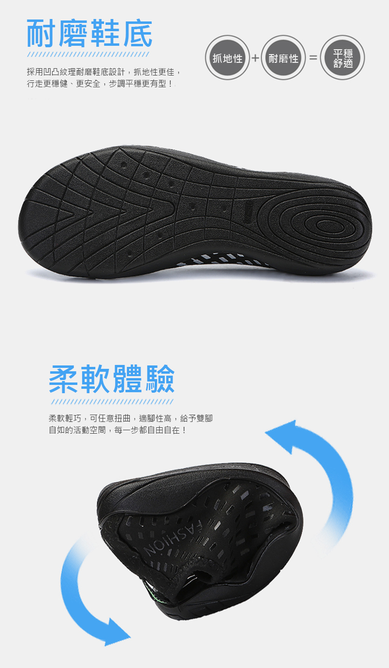 量、排水、!用盈透柔材,快乾布料作,凹凸理耐磨鞋底,不受任何境限制,超柔性,上山下海皆可穿!