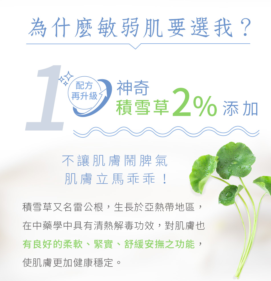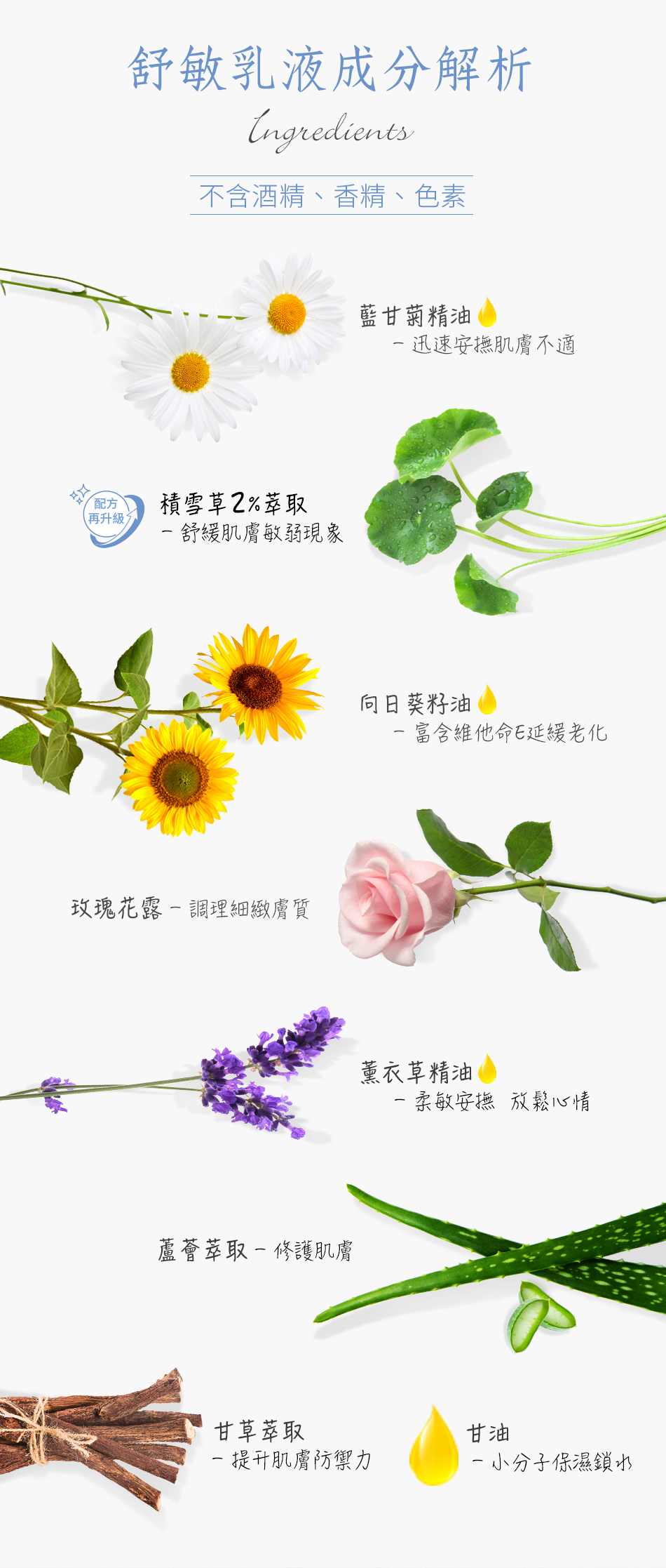 全新舒敏配方【甘菊雪草】舒肌乾燥敏弱,雪草又名雷公根,有「植物生」之,生於地,在中中具有清解毒功效肌也有良好的柔、、舒安之功能,使肌更加健康定,另添加玫瑰花露萃取,提升肌保力,天然植物油持肌的底住肌的水分,零的盈致地,舒服安乾燥肌不,不含酒精、香精、色素,柔呵你的肌。