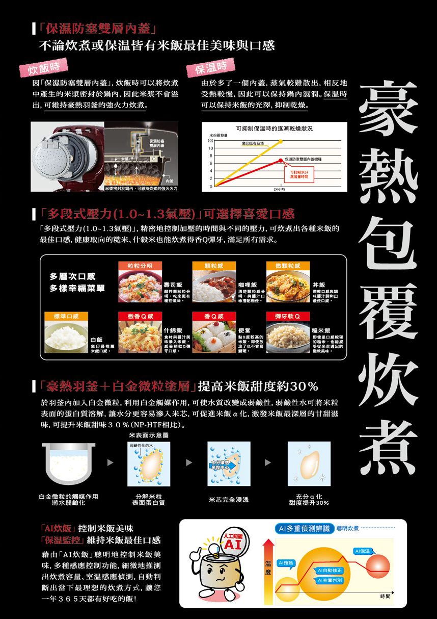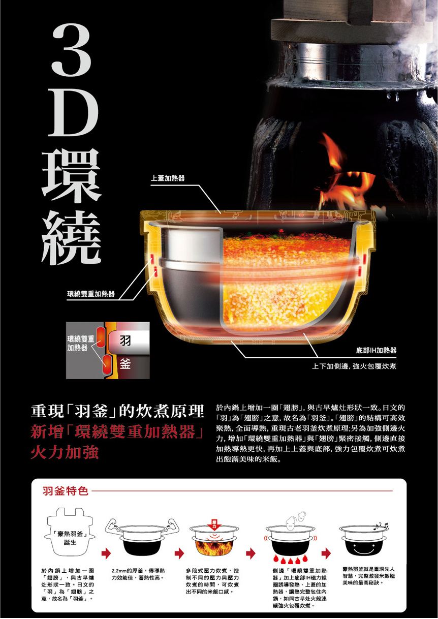 商品息特多段式力1.0~1.3:炊煮出各米口感 豪羽釜+白金微粒,保防塞:炊、保皆美味