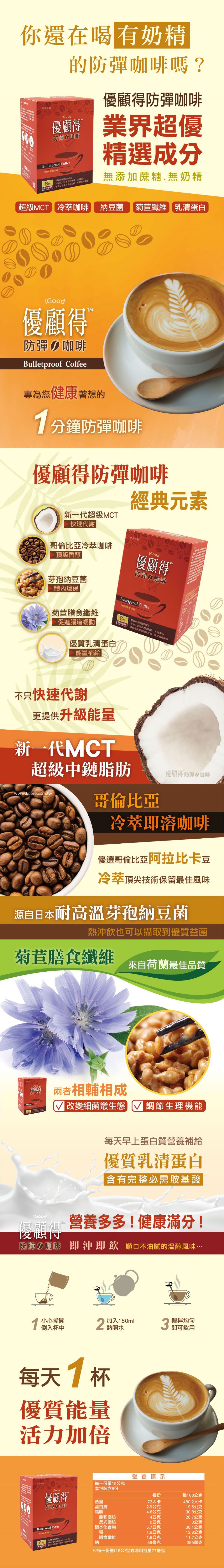 「得防咖啡」用防咖啡典元素,中超值推脂肪酸粉(MCT油)以及哥比高山冷乾燥咖啡,新一代的超MCT中脂肪酸,更好吸收、好消化,不只促新代也精神更佳!及代人重的取,本品的乳清蛋白,含有完整必需胺基酸作肌肉合成原料,增加以促健康更佳的生活品;芽孢豆菌其耐高的特性泡的防咖啡也可以充到益菌!另添加自荷的菊苣膳食可共同生理能、改菌生。此一配方由特,提供更高含量的超MCT中脂肪酸,口不油的醇味,「得防咖啡」是照您健康的首咖啡!