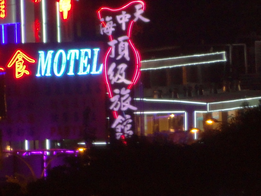 上是由我林的家往竹方向拍的,最有一紫色招牌,容看不清楚,但是放大後就成下~~原是海中天的招牌啊!想像一下,如果要抓猴用一把,肯定躲都躲不了滴!(距很,然有下降,但也有大加上晚上暗的干因子存在....)