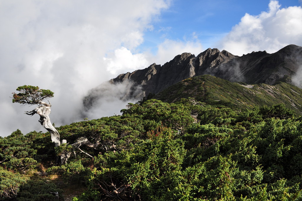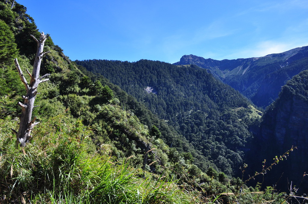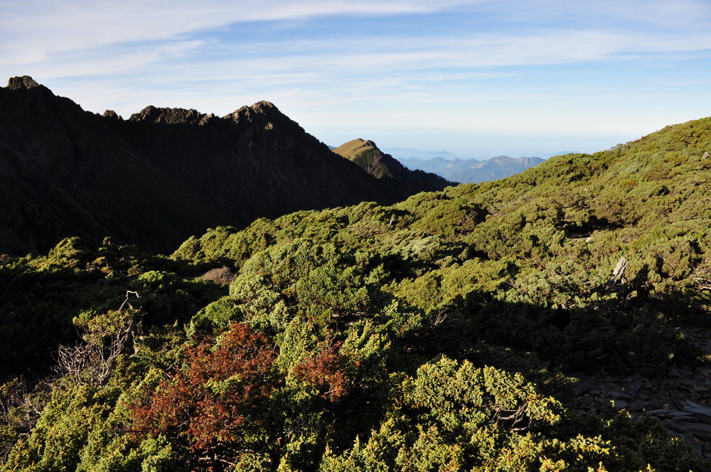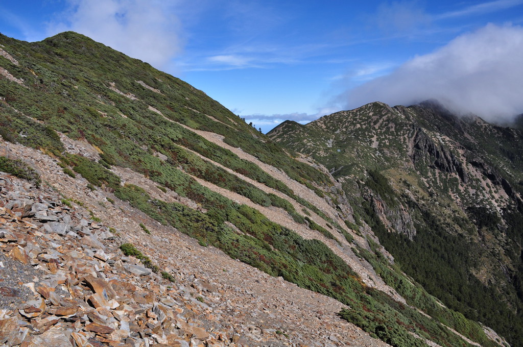 出不久在路左有株霜的玉山柏立群,著方博拉斯、秀姑和芬尖,多派啊!它峰名也不。而三叉峰往右迤而去的後出一柔美草坡,正是本就不在此行中的南玉山,不知哪天才能登。