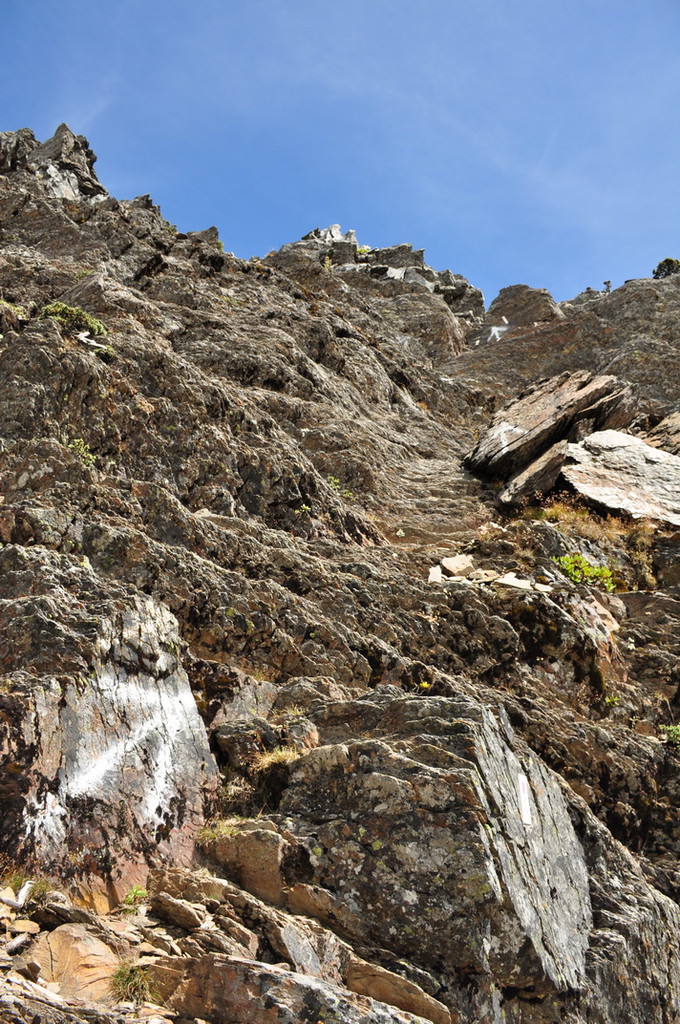 一路跟著布岩壁上的白色箭漆手用地攀爬,不是垂直九十度的徒手攀岩,但也相去不。神在後叮「三不一」,我可是一刻也停不下,深怕一停就手都了。