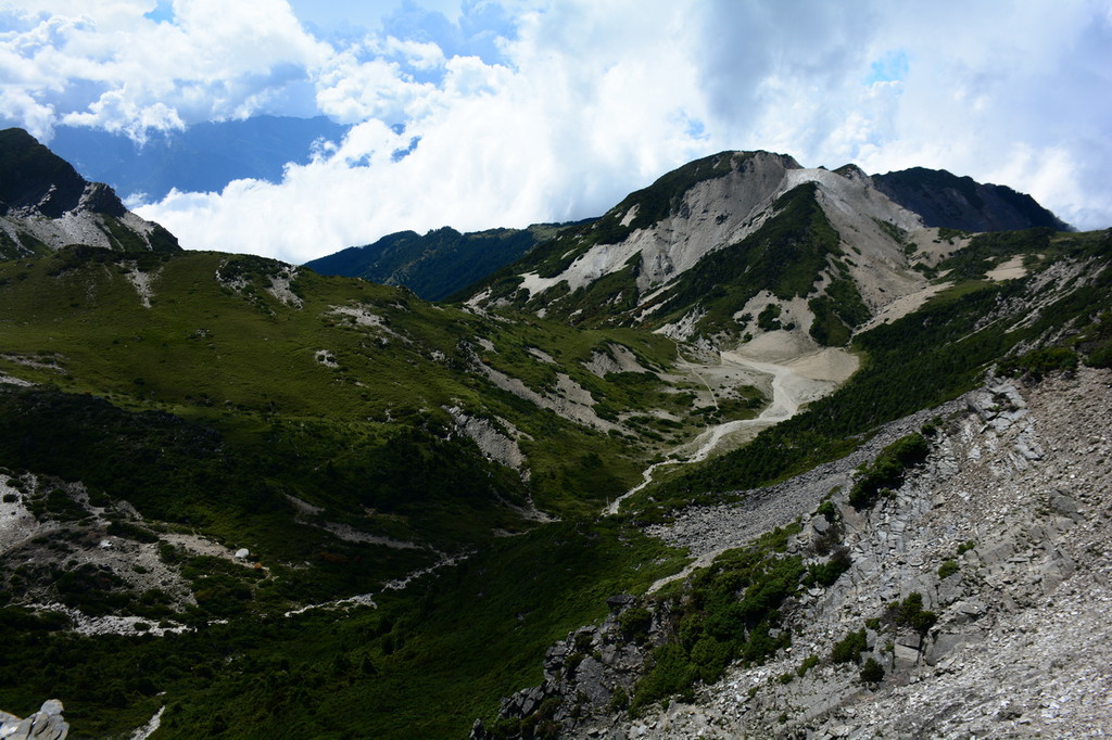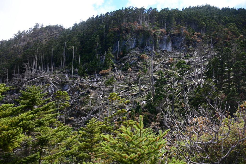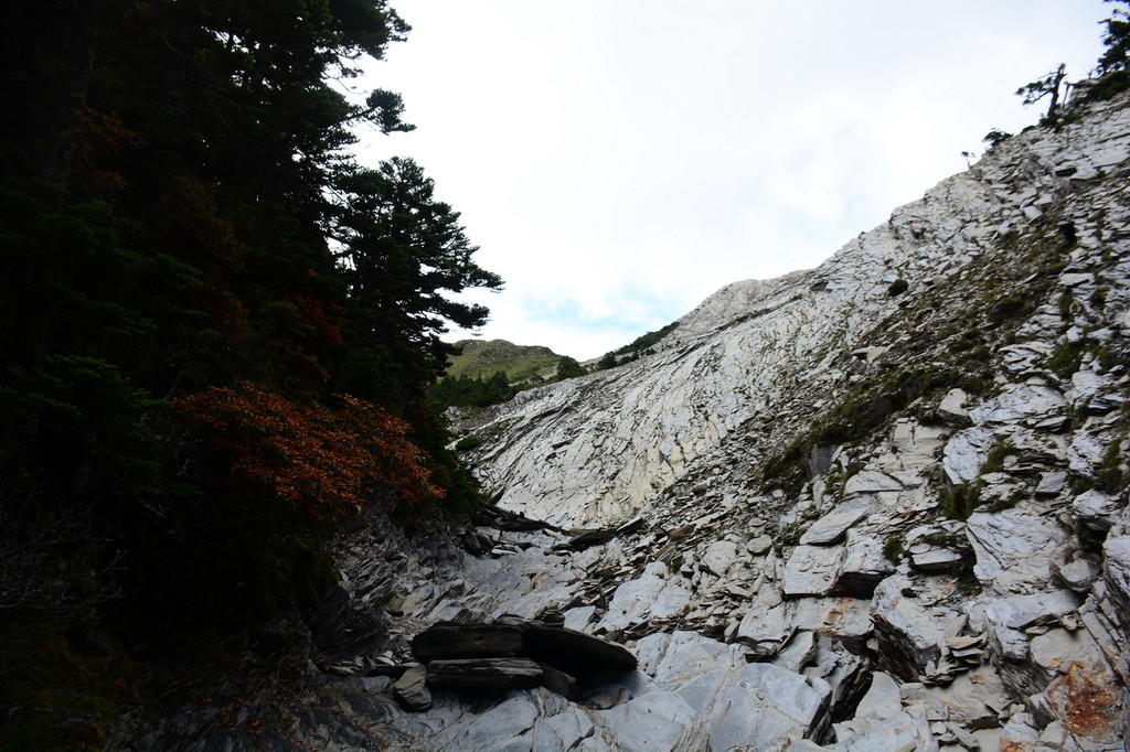 ¶þÊ®·ÖááÒÀÉϲ¼ÍùÓÒÁÖ×Ó£¬½ÓÖø×ßÔÚÓÒб45¶ÈµÄÍ»³ö°×ÑÒһ·ÉÏÅÊ£¬°ëСááÒÑÅÊÉý²»ÉÙ¡£»ØÍû¿ÉÑÛµÄÄÏ·åÔÚϪ¹È×󣬰׵ÄÑÒ·åÉÏ͹Æðһʯ£¬Ï·½ËéʯÓÐÐû¶øÏÂÖ®£¬²»Ïª¹ÈÓÐÒ»¶Î¾à±ã¸ÂÈ»¶øÖ¹¡£ÉÔ½üµÄÌÕÈû·åÔÚÕûƬ´ØÏÂ̽³ö»Ò°×µÄÑҷ壬ÑÒÀí³Ê45¶È½ÇÍùÓÒÏÂб£¬Ç¡ÏÈǰµÄ°×ÑÒÏà·û¡£Ïª¹ÈÓÒɽÏÂÓÐÓòµ¹Ä¾Éõ¶à£¬²»ÖªÉúʲÊ£¿