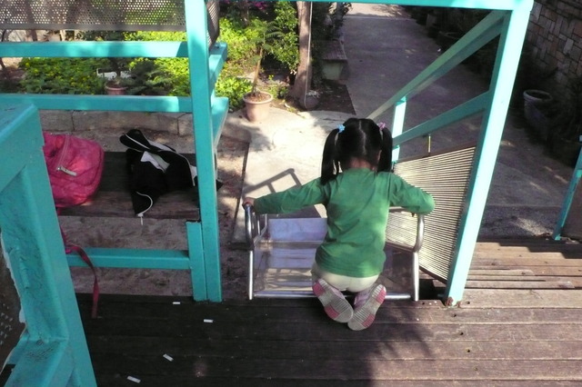 的滑梯很矮 有可供家家酒的小屋 超合前的小小孩