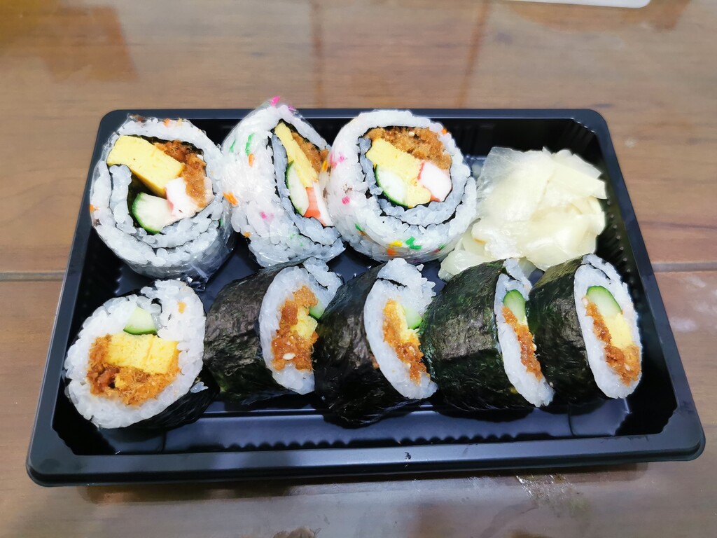 海苔司(1份/80元),1份6,有小瓜、玉子、肉等食材,吃起很爽口,炎的天,有胃口,也很合。