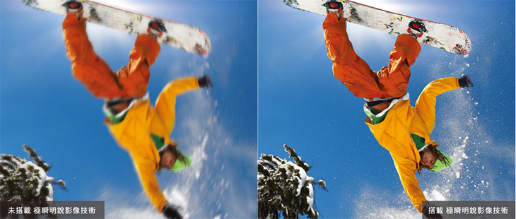 全新的瞬明影像技可高速作中的物精分析,提高面流性,少留, 降低快速所引起的模糊和影,同保持原始影像之亮度及真扈。 |