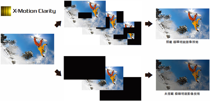 -般播放育目和作影景,高速移下使影像看起有些影, Sony最新的瞬明影像技,可使所有面保持流、明亮、清晰,每-瞬都可精掌握, 在必要自化亮度,您不任何真。 |