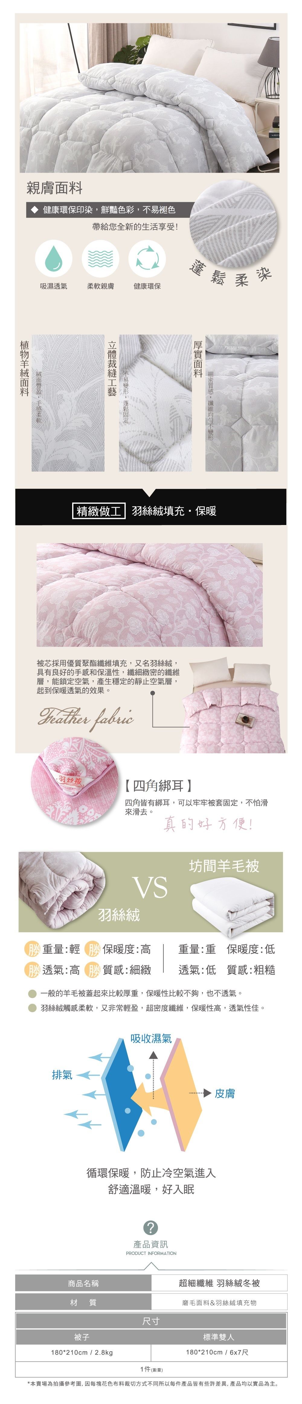 ● 羽可水洗胎,冬季必多用能被,吸透,柔 ● 四角皆有耳,可牢牢固定被套