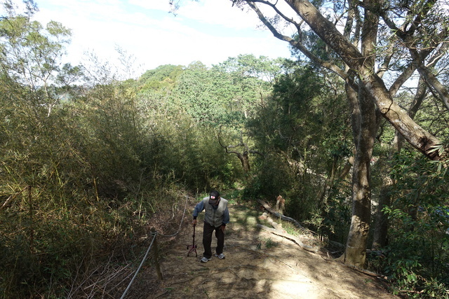 入口到百年刺竹,得先走一段陡上水泥路,爸,有吃力。