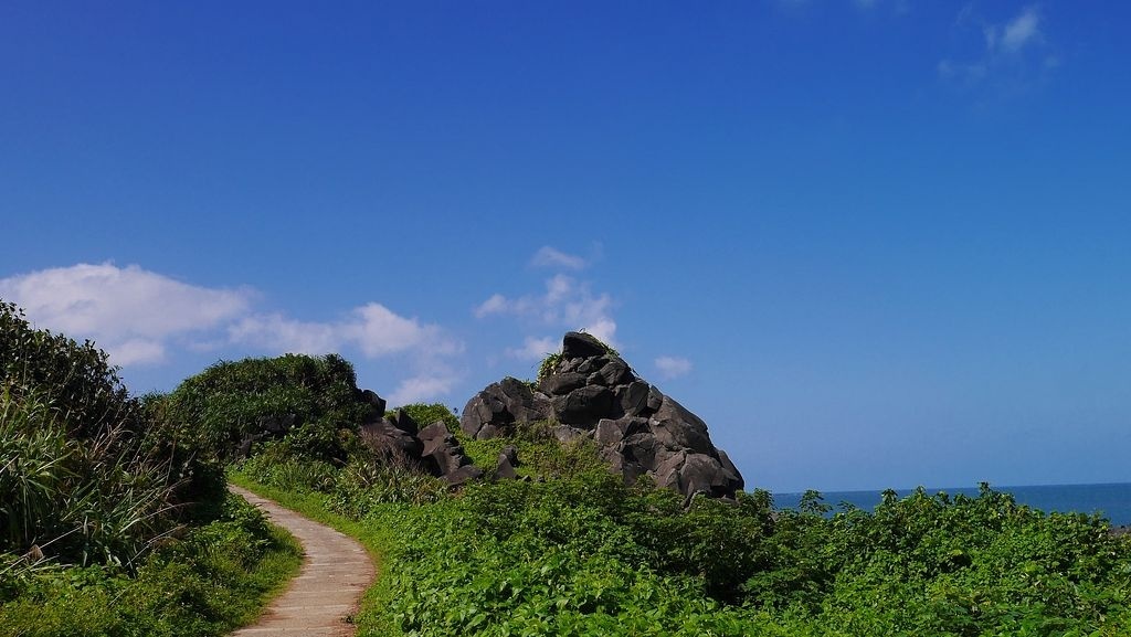 往前走,步道走得非常舒服,一是大海,一是山坡,然不高但是景象特殊。